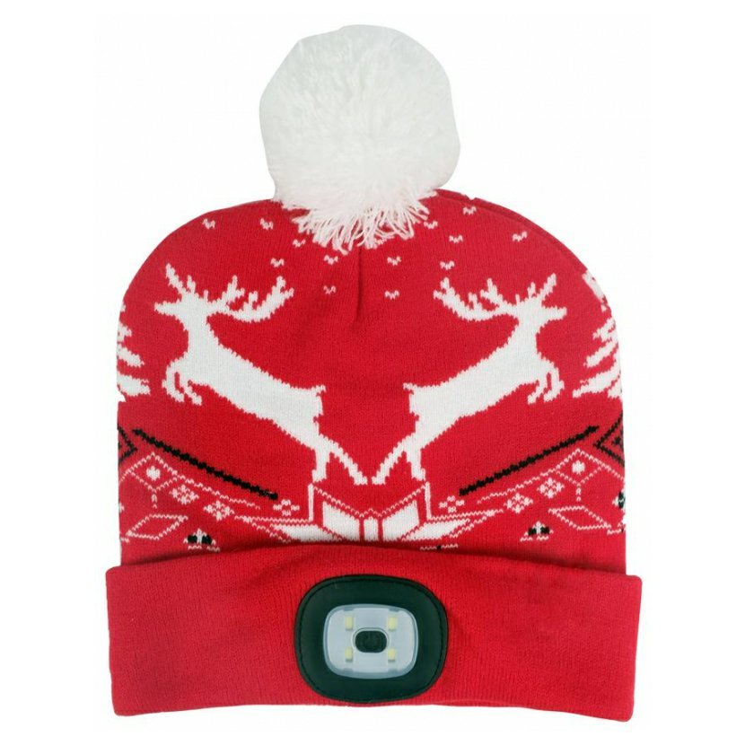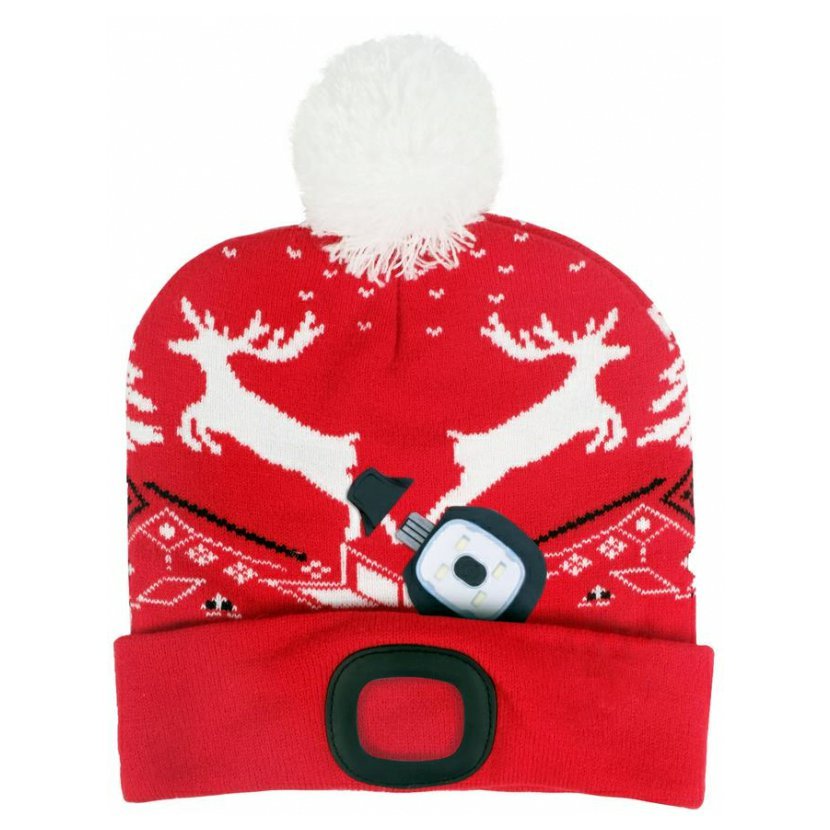 Buď stylový s pohodlnou a teplou čepicí Strend Pro! Čepice v červené barvě se soby s bambulí v krásném vánočním designu. Velikost L. Nabíjení LED světla pomocí USB portu