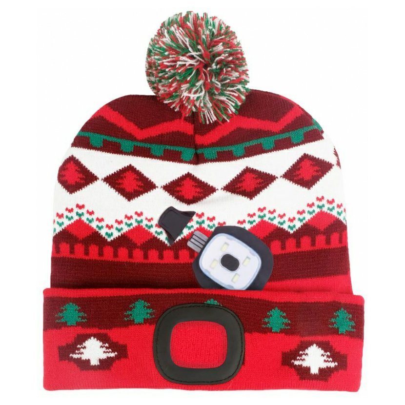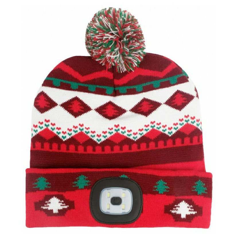 Buď stylový s pohodlnou a teplou čepicí Strend Pro! Čepice v červeno hnědé barvě s bambulí s krásným vánočním designem. Velikost L. Nabíjení LED světla pomocí USB portu