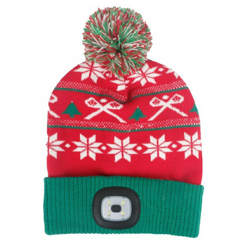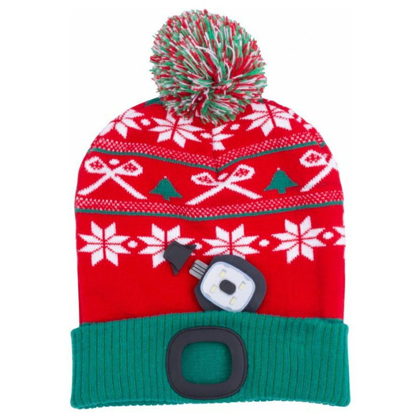 Buď stylový s pohodlnou a teplou čepicí Strend Pro! Čepice v zeleno červené  barvě s bambulí s krásným vánočním designem. Velikost L. Nabíjení LED světla pomocí USB portu