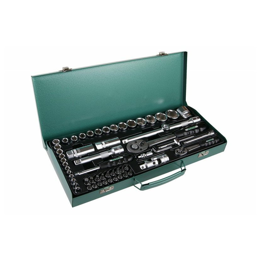 Vysoce kvalitní sada gola klíčů, záruka 10 let. Všechny části jsou vyrobeny z vysoce kvalitní chrom-vanadiové oceli. Veškeré hlavice a díly vyrobené kováním. Niklová povrchová úprava. Hroty bitů jsou ze slitiny oceli S2. Ráčny mají jemné dělení 72 zubů, tělo ráčny z CrV oceli, zubový mechanismus z S2 oceli, ergonomicky tvarovaná rukojeť. Velmi odolné kufry z ocelového lakovaného plechu. Použití do průmyslu, profesionálních servisů, autodílen.