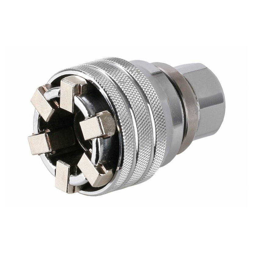 Nastavitelná hlavice na šrouby a matice se šestihrannou hlavou v rozsahu 10 - 19 mm. Kvalitní chromvanadiová ocel. Snadné a rychlé nastavení požadovaného rozměru otočným prstencem. Uchycení na 1/2" ráčnu