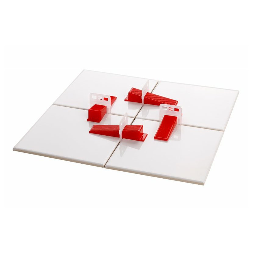 Klíny k nivelačním sponám pro přesnou pokládku dlažby a obkladů. Odstraní případný výškový rozdíl mezi pokládanými dlaždicemi ve spáře. Nivelační systém obsahuje - distanční spony různých tlouštěk a nivelační klínky (opakovaně použitelné). Aplikace - pomocí kleští 37177, 37178. Šířka spony udává šířku spáry. Aplikace klínků pomocí kleští srovná dlaždice, po zaschnutí se horní část spony s klínkem odstraní - bílou gumovou palicí nebo ukopnutím. Rozměry a množství uvedeny v názvu výrobku