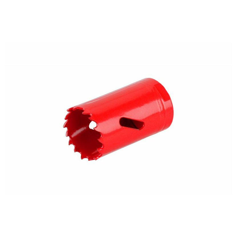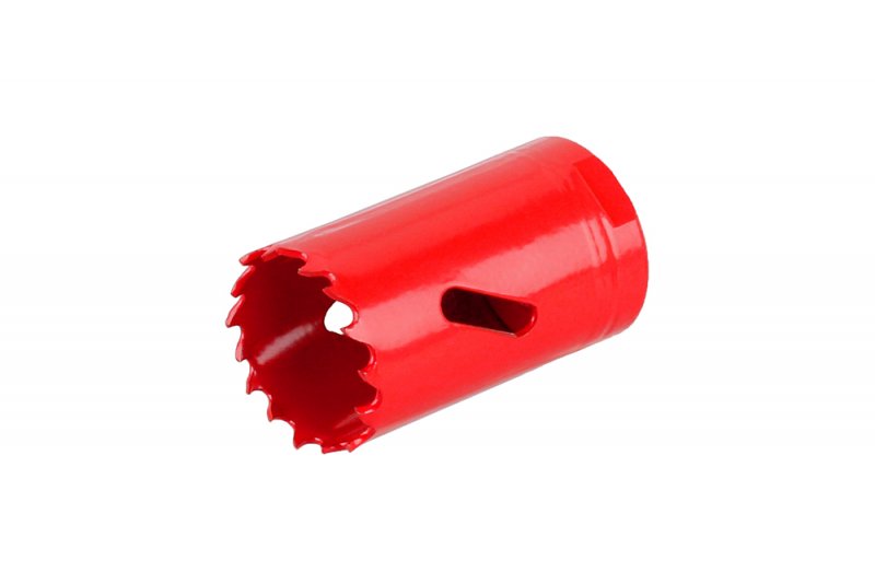 Korunka vrtací - vykružovací HSS BiM. Pro vrtání - vykružování kruhových otvorů do oceli, barevných kovů, sádrokartonu, dřeva, plastů apod. Pro upnutí do stroje slouží našeč 24410.