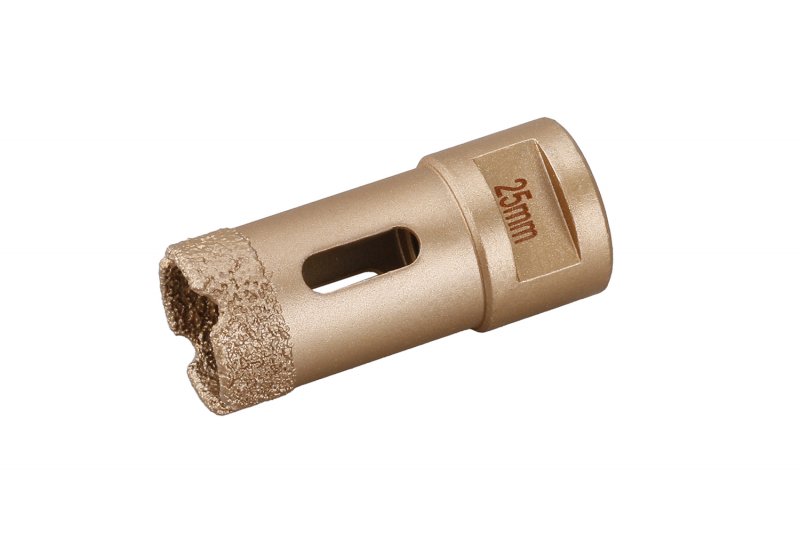 Profesionální vykružovací diamantová korunka se závitem M14 - pro úhlové brusky. Pro "suché" přesné a rychlé vrtání do kamene, dlažby, obkladů, žuly, mramoru a jiných extrémně tvrdých materiálů nejen ve stavebnictví. Výška vrstvy diamantu 10 mm, dlouhá životnost. Bez nutnosti použít jakýkoli pomocný nástroj. Vykroužíte přesný otvor na požadovaném místě. Doporučený pracovní postup - našroubujte korunku přímo na závit hlavy úhlové brusky, pevně dotáhnete, vykružovat požadovaný otvor začnete pod úhlem 45 °, korunka a rychlost brusky okamžite zajistí uchycení v požadovaném místě, pomalu při rovnoměrně vytvořeném tlaku narovnejte směr vykružování do svislé polohy, menší průměry 6 - 14 cm je u vrtání do tvrdých dlažeb, mezi jednotlivými vrty, ZCHLADIT - stačí ponořit do sklenice s vodou nebo nechat v otáčkách ochladit vzduchem!