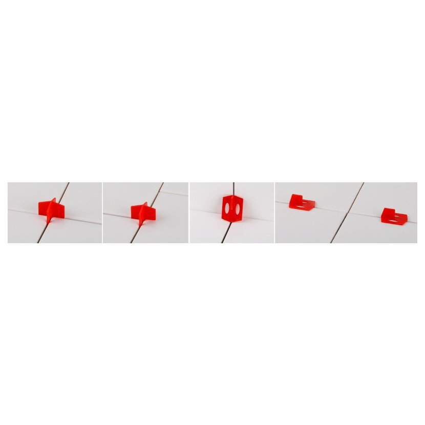 Opakovatelně použitelné multifunkční křížky pro vymezení stejné spáry při různých druzích pokládání dlažeb a obkladů. Speciální tvar umožňuje použít křížky pro vymezení stejné spáry dlaždic při kladení na střih, na vazbu, na koso, pro přesné přechody dlažby z horizontální roviny do vertikální. Jednotlivé rozměry křížků 1, 1.5, 2 a 3 mm jsou barevně odlišeny, pro snadnou přehlednost a zamezení záměny při použití