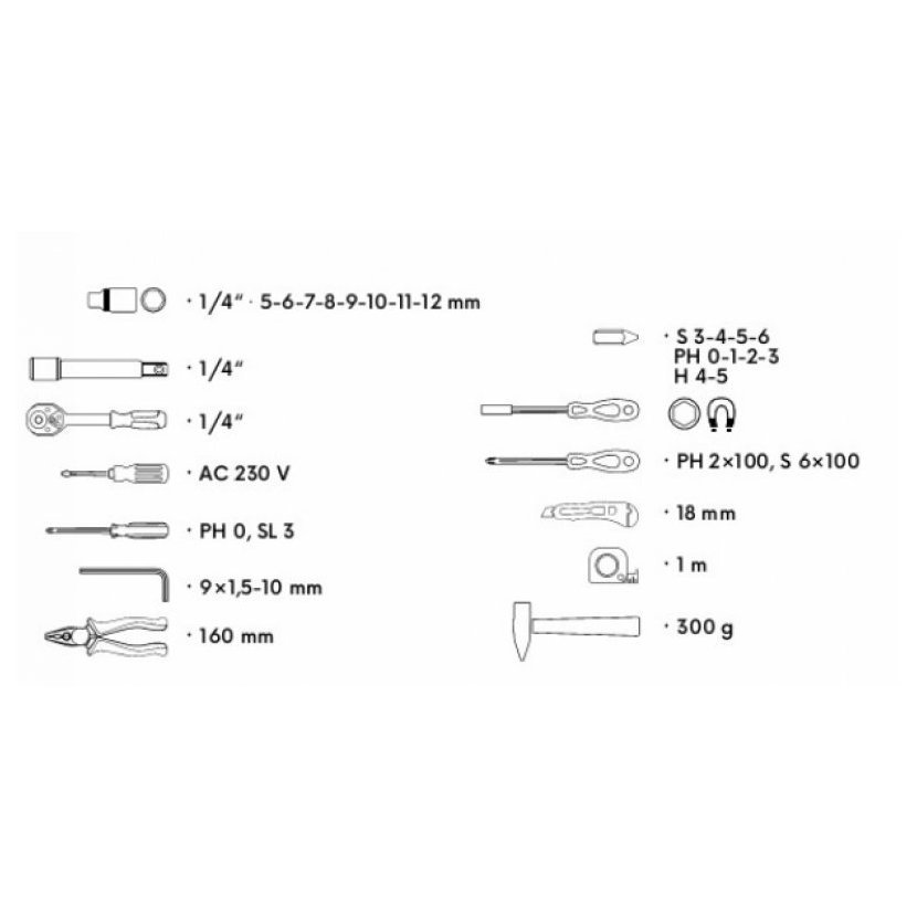 Set nejběžněji používaného nářadí. Praktické nylonové pouzdro s přehledným uspořádáním pro snadný výběr a použití.