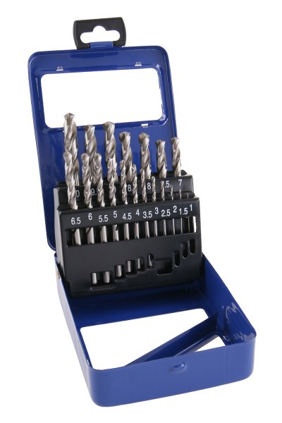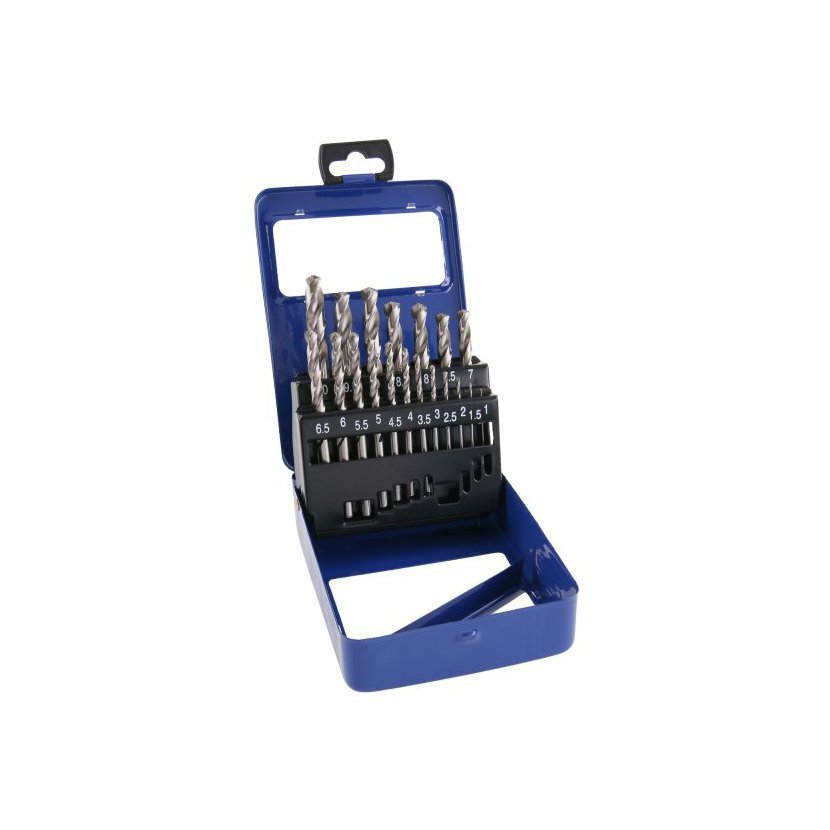 Sada vybrušovaných vrtáků HSS-G, splňující normu DIN 338, RN, vrtáky jsou vyrobené z vysoce kvalitní rychlořezné oceli (HSS), ocel je zušlechtěna legurami - Wolfram 9%, Molybden 3%, Chrom 4%, Vanadium 1% - pro vrtání ocelí do 900 N/mm. Přesné vybroušení šroubovice pro maximální výkon, přesnost a dobré středění, díky vybroušení úhlu špičky vrtáku 118° lze vrtat i bez nutnosti použití důlčíku, určené pro průmyslové použití.