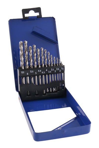 Sada vybrušovaných vrtáků HSS-G, splňující normu DIN 338, RN, vrtáky jsou vyrobené z vysoce kvalitní rychlořezné oceli (HSS), ocel je zušlechtěna legurami - Wolfram 9%, Molybden 3%, Chrom 4%, Vanadium 1% - pro vrtání ocelí do 900 N/mm. Přesné vybroušení šroubovice pro maximální výkon, přesnost a dobré středění, díky vybroušení úhlu špičky vrtáku 118° lze vrtat i bez nutnosti použití důlčíku, určené pro průmyslové použití.