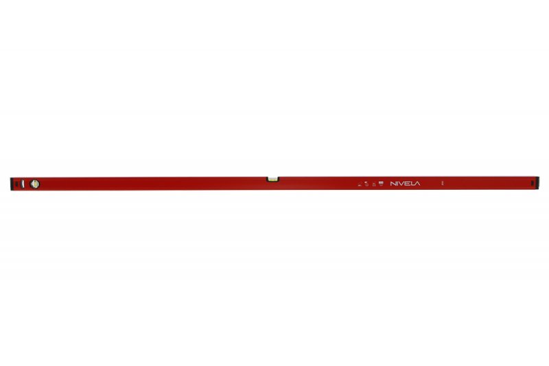 Vodováha se dvěma libelami s přesností 1mm/1m, hliníkový profil - síla stěny 1,4mm, gumové koncovky, optická libela, fluorescenční kapalina.